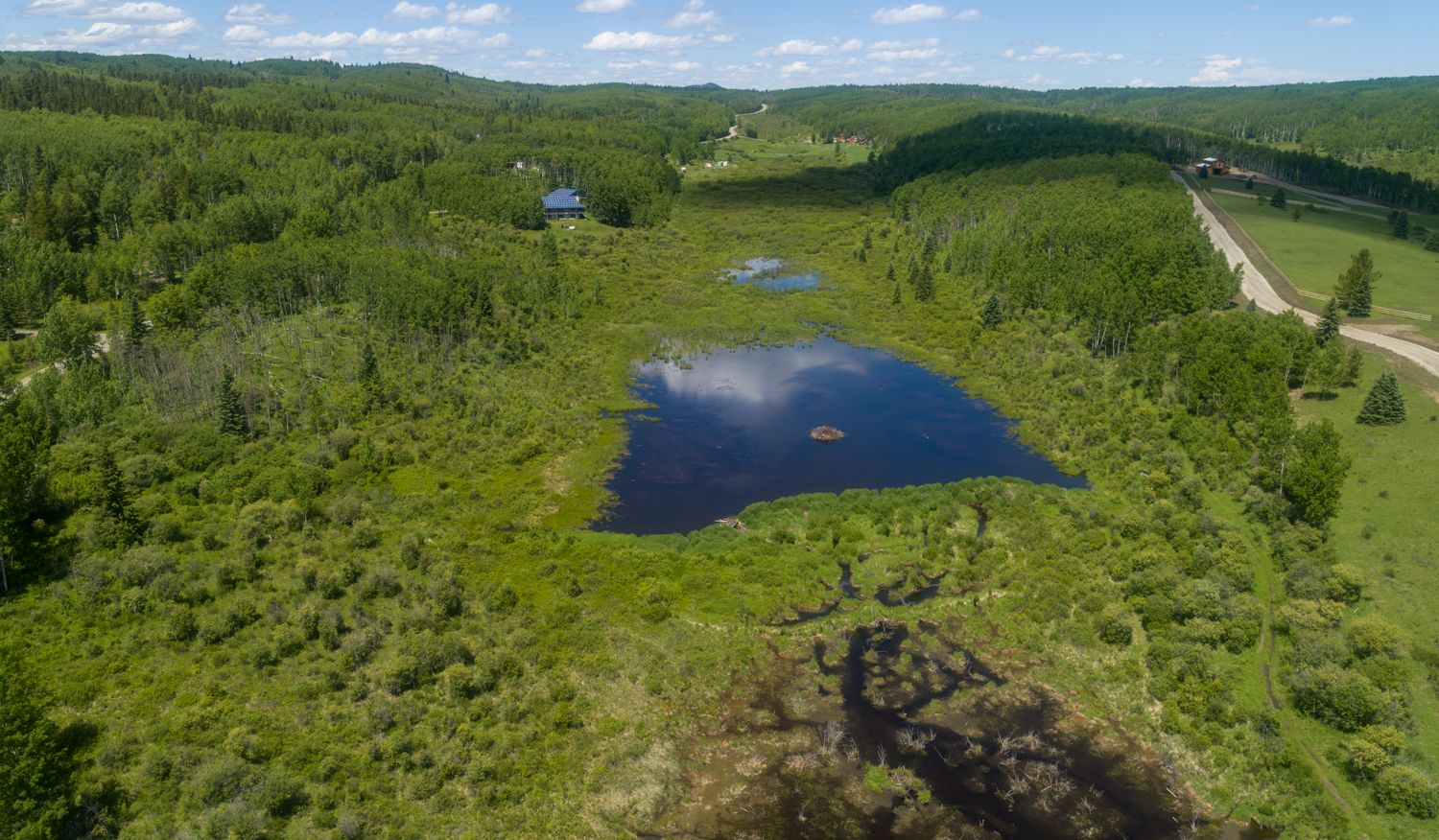 During high flows, sediments from the stream channel are deposited onto the floodplain, which positively influences soil composition and the root distribution of plants. Improved soil coupled with increased water availability in and around beaver ponds facilitates the growth of riparian vegetation at the interface of the land and the stream (riparian area).